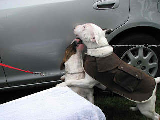 Yah!! I love dog shows. Lots of dogs to play with. Sue's nieces came with us and we all slept in the tent. Yep, even me! I got to sleep in the tent cause it was soooo cold that Sue needed a hot water bottle. I never go cold. I got reserve bitch and reserve of breed each day. Maris bet me but that's okay. I'll beat her next time.